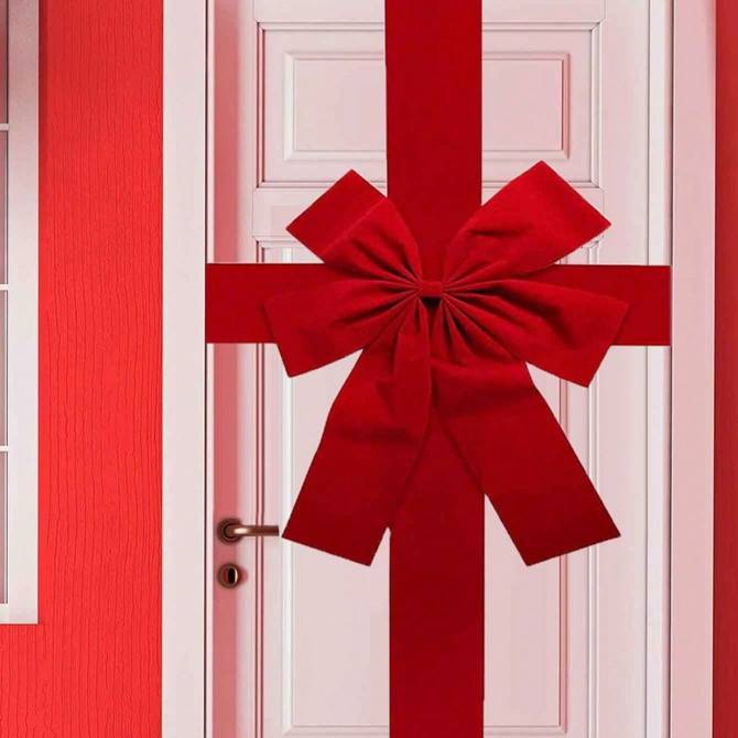 This Christmas bow features a beautiful 3D full ribbon design made from durable non-textile materials. The smooth, elegant texture gives it a premium holiday look, making it a standout piece on doors, walls, porches, trees, or party backdrops. Its lightweight construction makes hanging easy using hooks, ties, adhesives, or decorative strings.