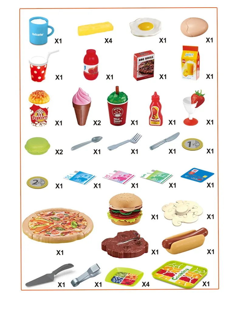buns, vegetables, and barbecue skewers, children can engage in realistic cooking activities. This theme enhances role-play, encouraging