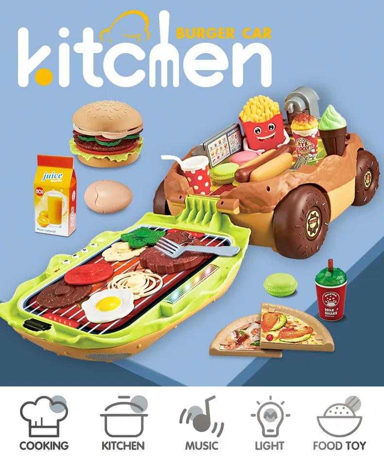 The Large European and American Children Play House Kitchen Toy Hamburger Barbecue Cooking Kitchenware Tableware Sales Pushcart is more than just a toy—it's an interactive, educational experience that fosters creativity, teamwork, and social skills. Whether your child dreams of being a chef, waiter, or restaurant owner, this playset offers endless possibilities for imaginative play. Its realistic features and vibrant design make it the perfect addition to any child's playroom, ensuring hours of fun and learning.
