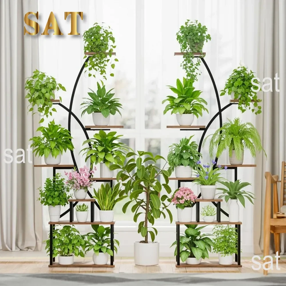 The stand includes several shelves at different levels, allowing you to display a range of plants in a visually organized way. This multi-tier design makes it easy to arrange plants of varying heights and sizes, creating an attractive, layered look.