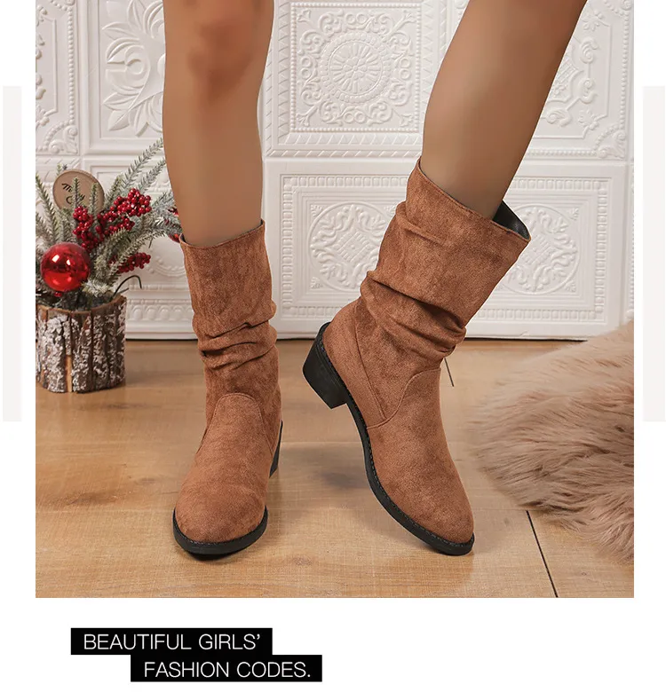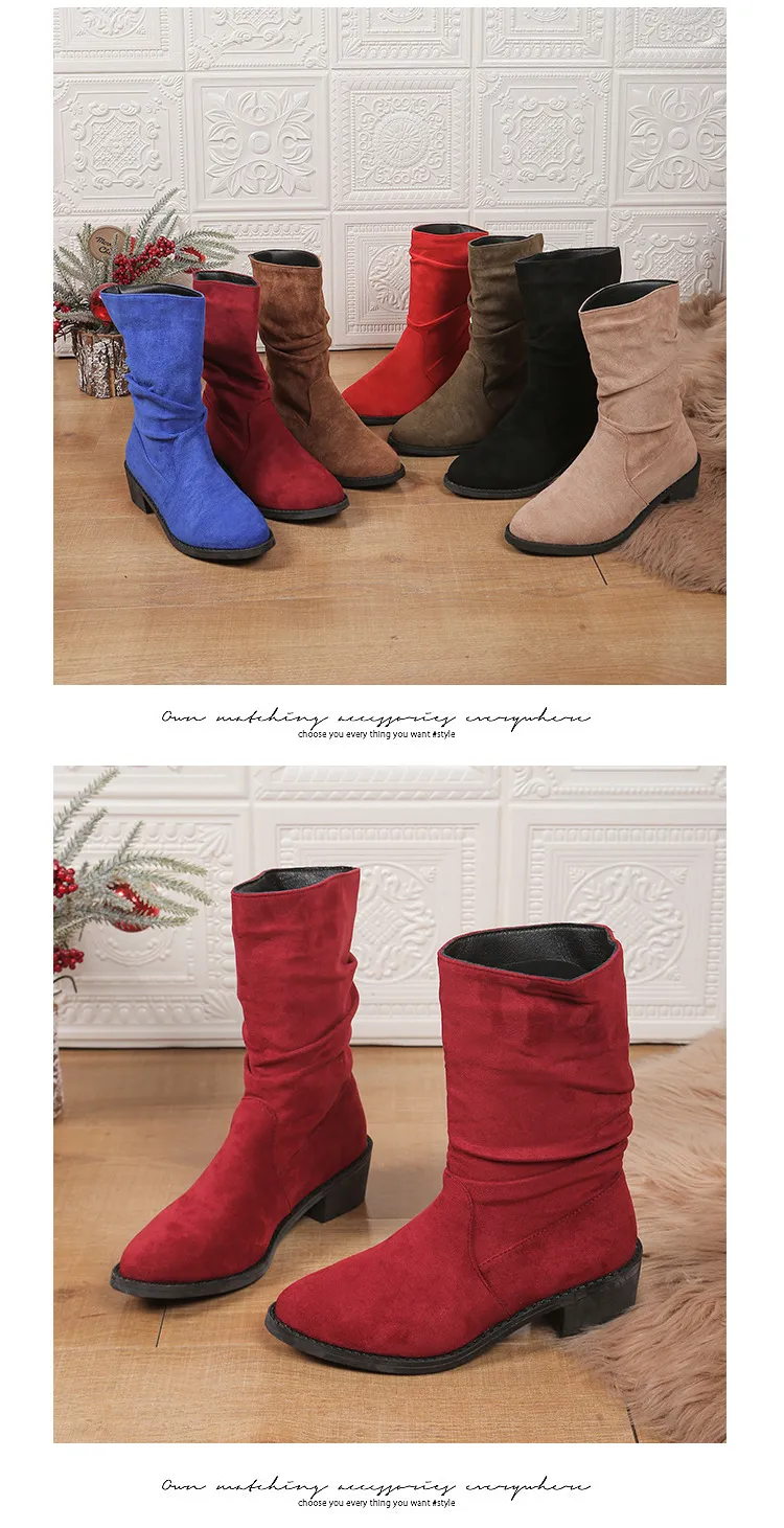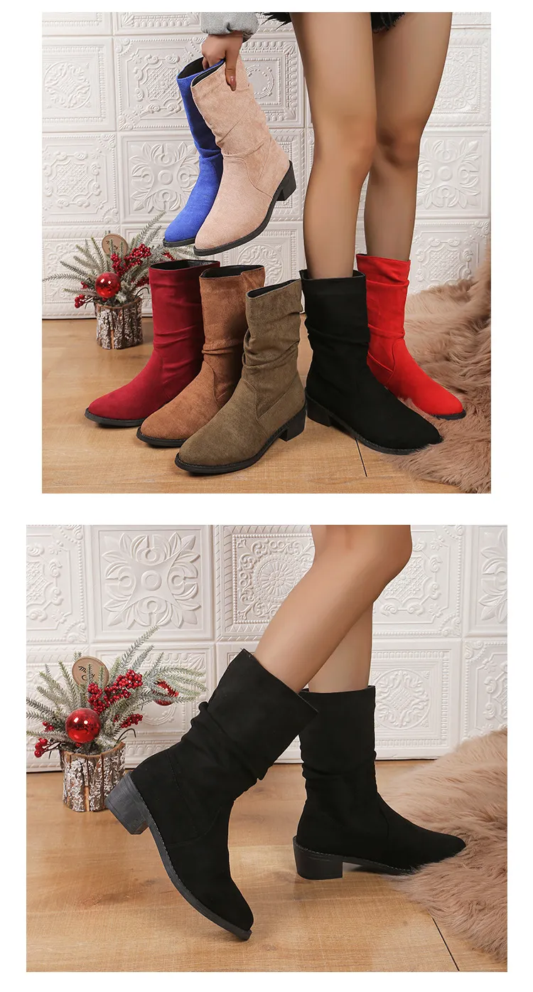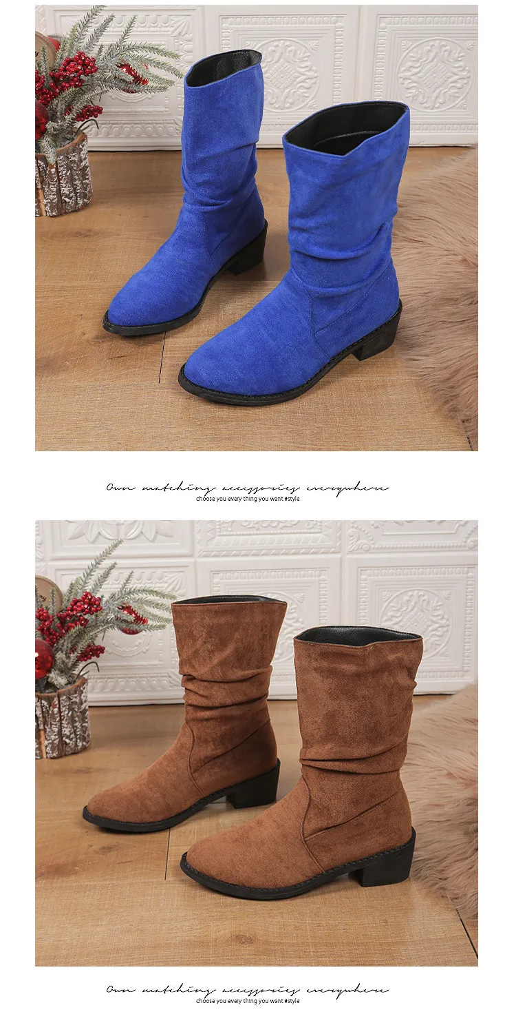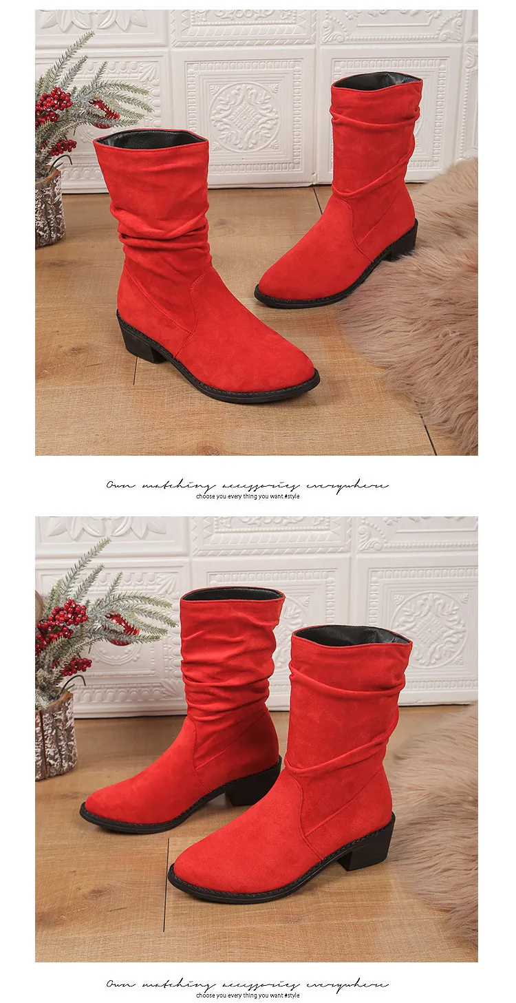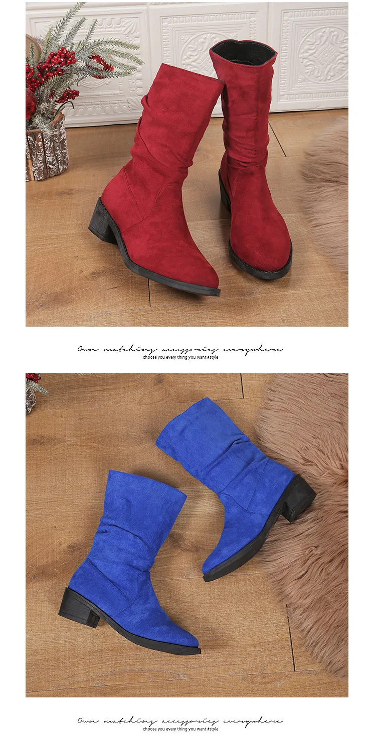 Our Large Size Thick Heel Pointed Toe Mid-Calf Smoke Pipe Boots for Women deliver the perfect blend of fashion, comfort, and versatility. Designed to suit all occasions, these boots are a must-have addition to your footwear collection.