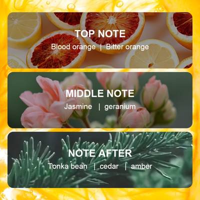 - Top Feel: Juicy blood orange for an immediate bright, uplifting first impression.