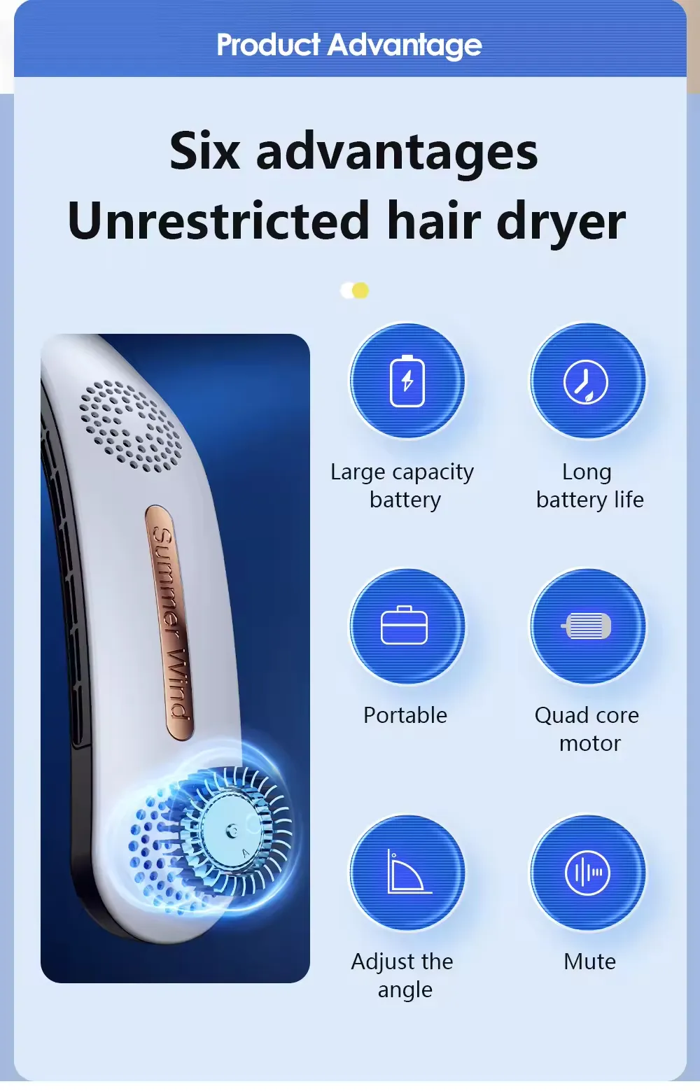 Ideal for outdoor activities, sports events, and warm-weather travel, this leafless neck fan combines functionality with modern design. Stay