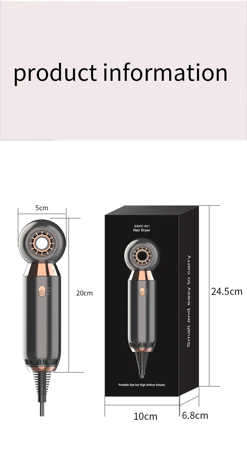 The Leafless Hair Dryer 800W Fan 2-Speed Electric Negative Ionic Blower is a game-changer for anyone looking for a fast, efficient, and gentle way to dry their hair. Thanks to its leafless fan design, it operates quietly while maintaining powerful performance. It is perfect for those who want a professional-quality drying experience without the high cost.