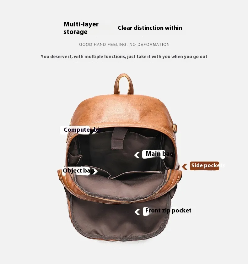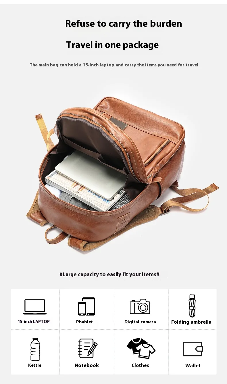 Elevate your travel and everyday style with the Leather Backpack Large Capacity, crafted from premium first-layer cowhide leather. Combining