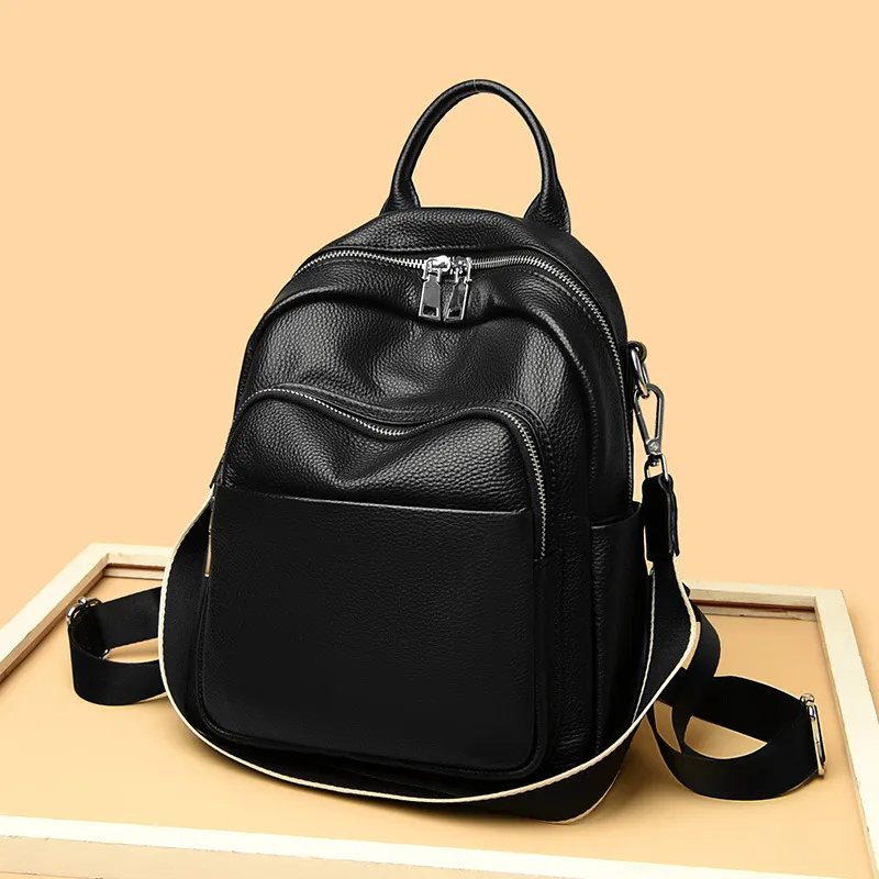 Leather Backpack Women's New First Layer Cowhide Simple All-match