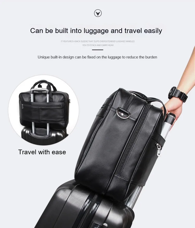 business travel.The Men's Real-Leather Bag features a spacious main compartment that accommodates laptops and notebooks up to 15 inches,