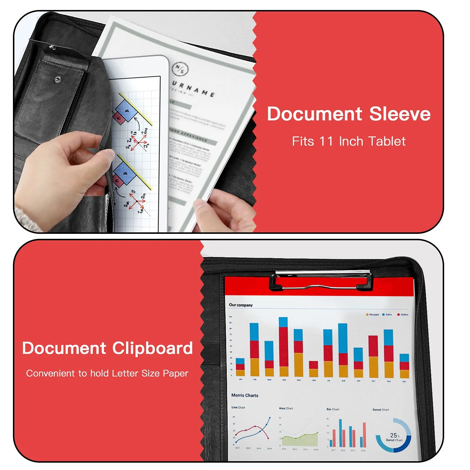 A portfolio-style folder is ideal for those who want a professional-looking case that can hold not only documents but also an iPad, tablet, or small laptop. These folders combine the benefits of a traditional zip folder with the functionality of a portfolio.