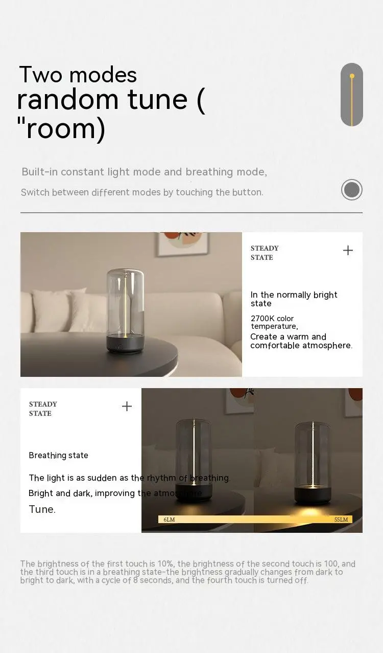 1. Two modes can be adjusted according to the heart+(normal breathing state with built-in constant light mode and breathing mode), and