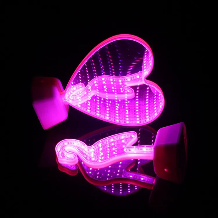 The mirror illusion and dual-sided LED lighting create a 3D infinity tunnel that seems to go on forever, symbolizing endless love and connection.