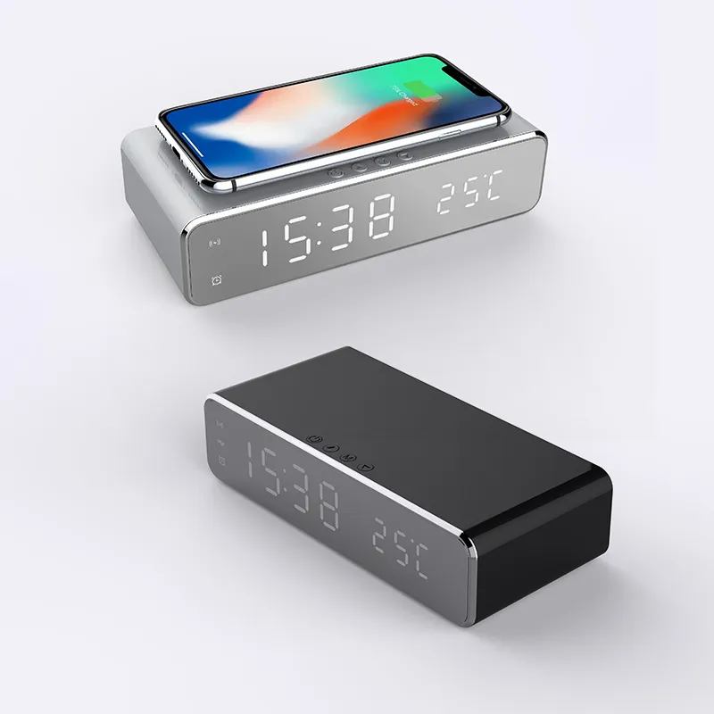 LED Electric Alarm Clock With Wireless Charger Desktop Digital Despertador Thermometer Clock HD Mirror Clock Watch Table Decor