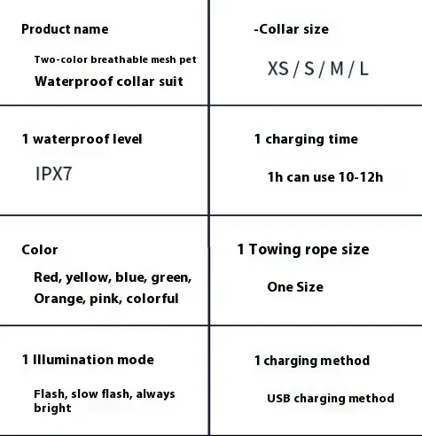 Pet Collar*1pc+USB Charging cable *1PC
