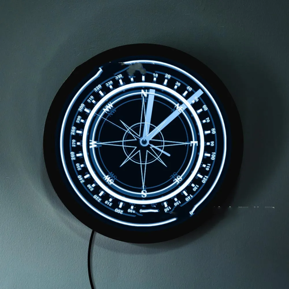 LED Luminous Wall Clock Black Wall Clock Nautical Compass Backlit Rose Compass Home Decoration Clock Wall Clock