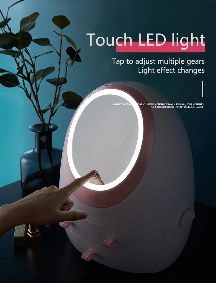 This LED makeup mirror brings together form and function. Unlike basic mirrors, it features dedicated lighting and controls built to