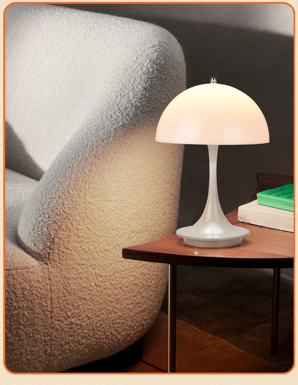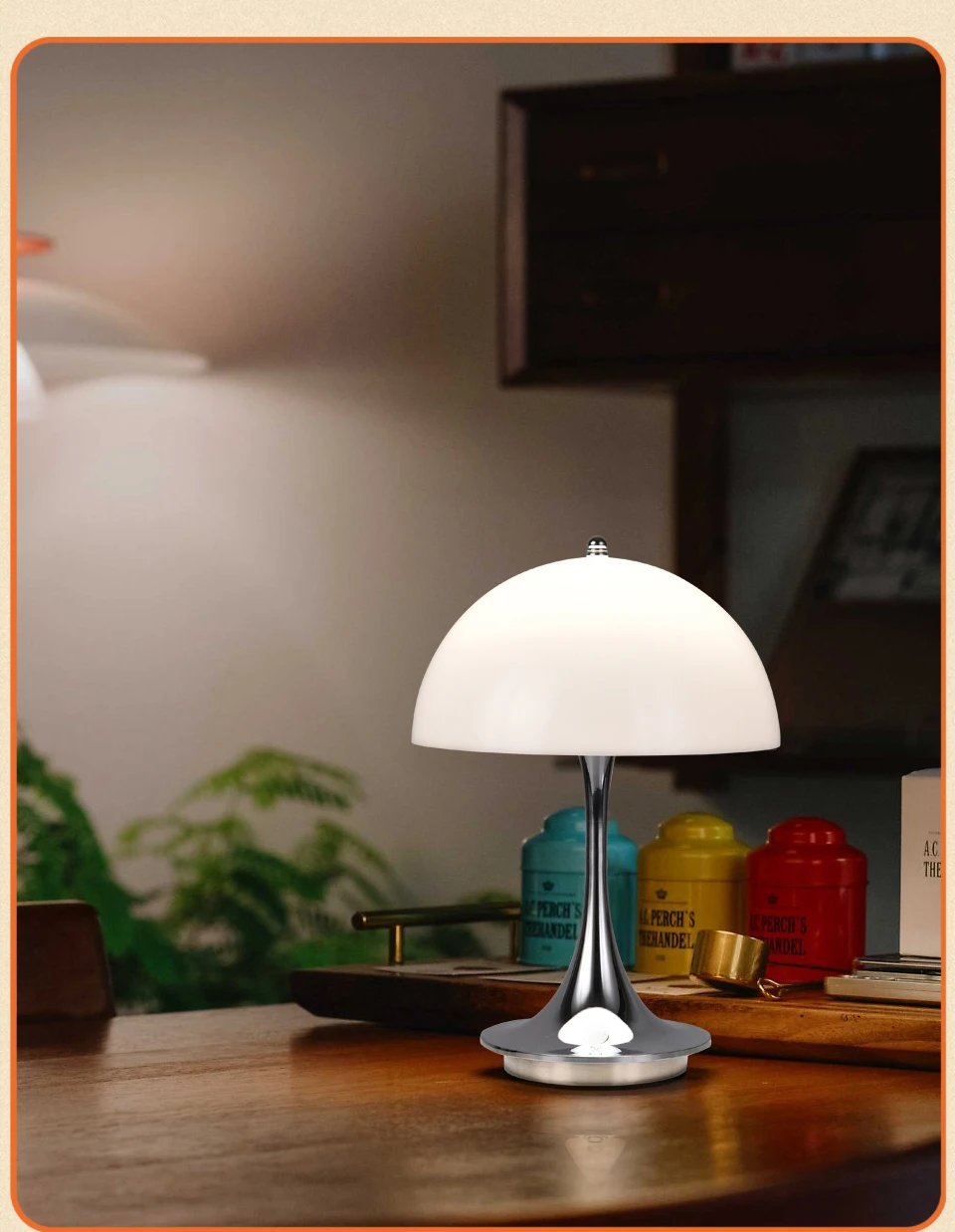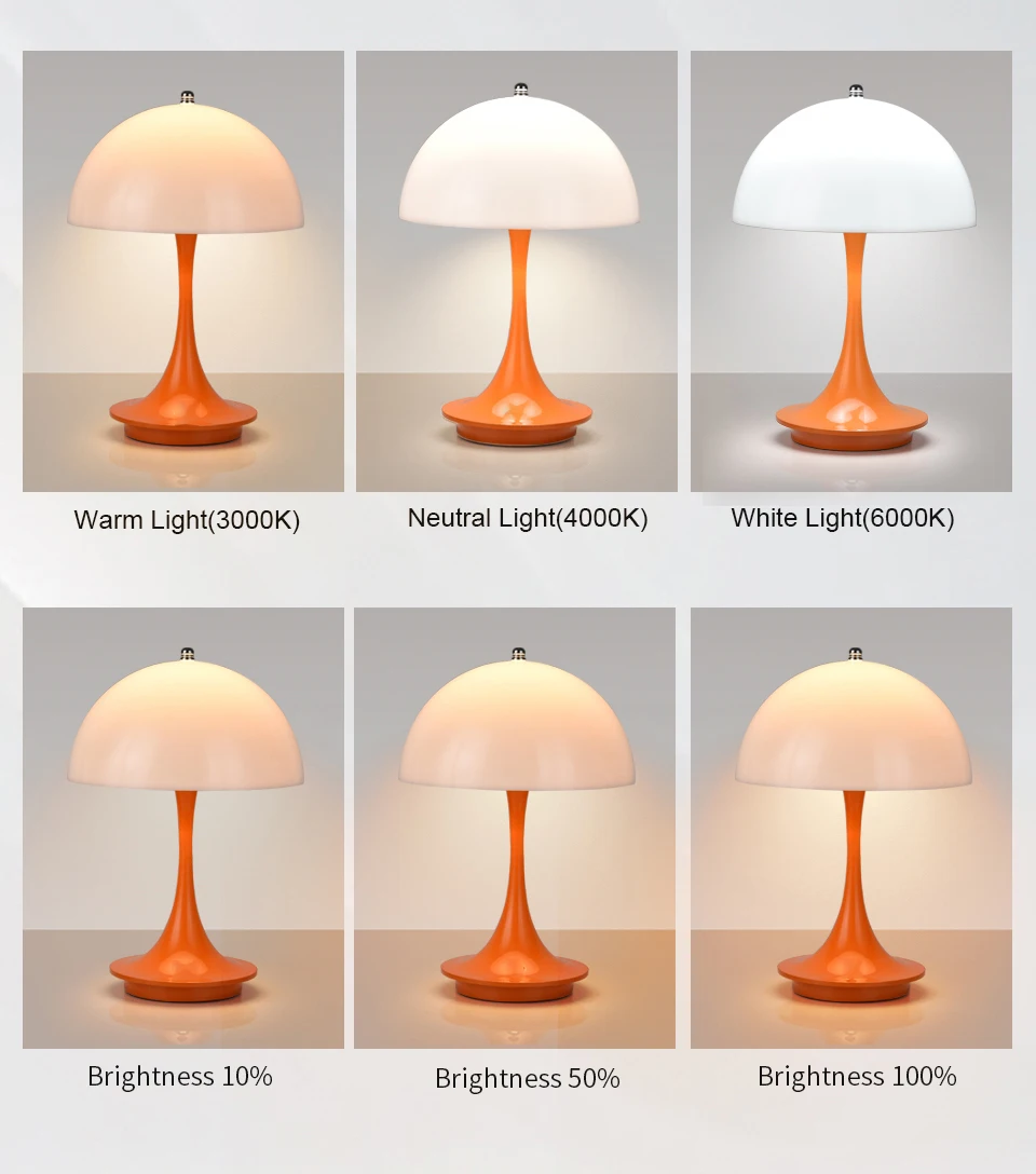 The LED Mushroom Small Table Lamp is a versatile and stylish lighting solution that fits perfectly into any bedroom or living space. Its dimmable brightness, touch control, and rechargeable battery make it a practical and eco-friendly choice for your lighting needs. The whimsical design and modern functionality make this lamp ideal for bedside use, providing the perfect balance of form and function. Whether you're looking for a functional night light, a mood lamp, or a decorative piece, the LED Mushroom Small Table Lamp is an excellent choice. Invest in this modern table lamp to enhance your home lighting experience and enjoy the benefits of customizable, portable illumination.