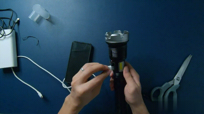 Flashlight power bank :USB input port allow you quickly charge the flash light and the USB output port help this led flashlight work as a power bank to charge your phone, camera and etc.