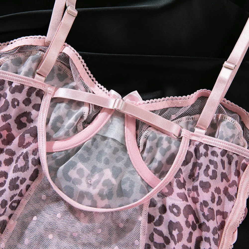 The see-through mesh fabric adds a provocative edge while maintaining elegance, making it perfect for special occasions, nightlife, or intimate moments. The combination of leopard print and polka dots offers a unique contrast that’s both trendy and timeless.