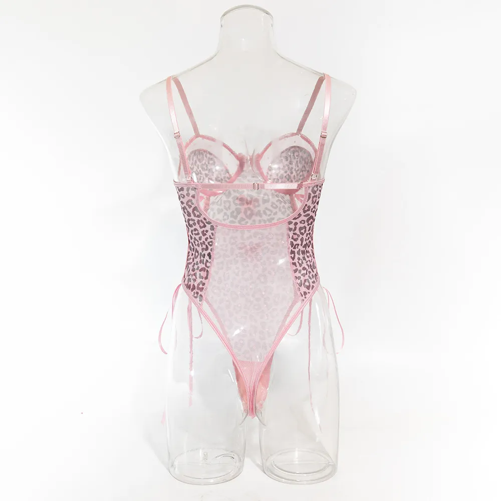 Leopard Print Polka Dot See-through Sexy Backless Spaghetti Strap Sexy Bodysuit