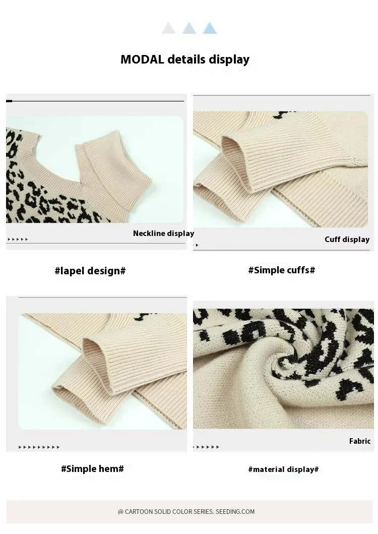 Leopard Print Stud For Autumn And Winter Women's Long-sleeved Sweater Shoulder-baring Sweater