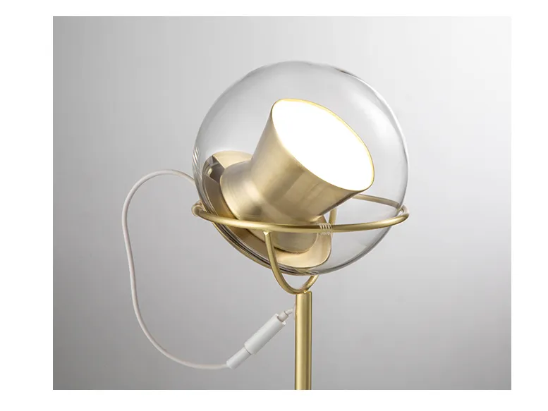 This lamp provides the perfect balance between modern elegance and functionality. Its artistic glass lampshade and sleek lines make it a striking addition to any room, providing both aesthetic appeal and practical lighting.