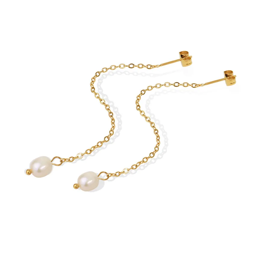 Light Luxury High Quality Advanced Classic Natural Baroque Pearl Chain Earrings