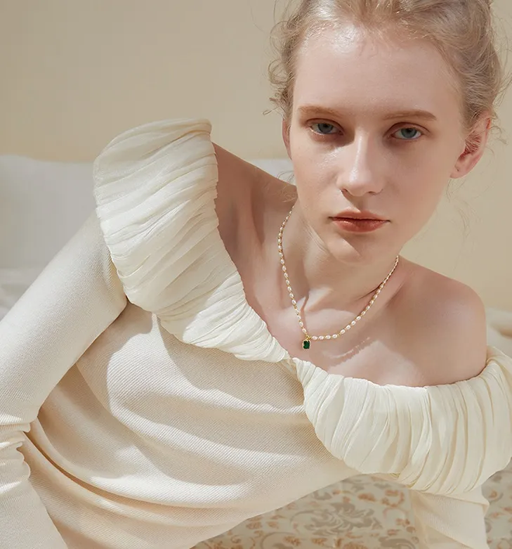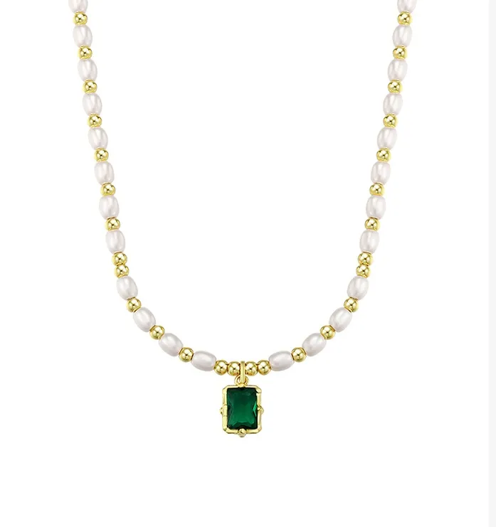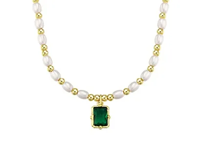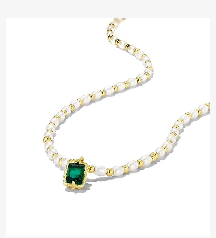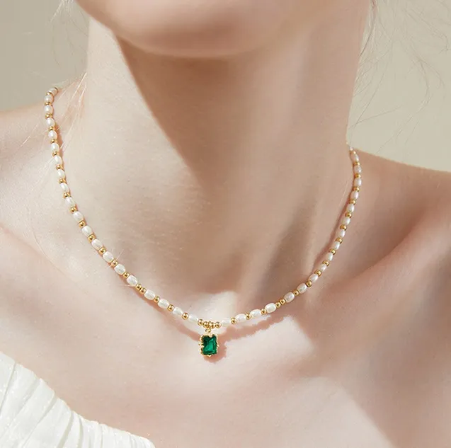 Light Luxury Minority Elegant Emerald Artificial Pearl Necklace For Women