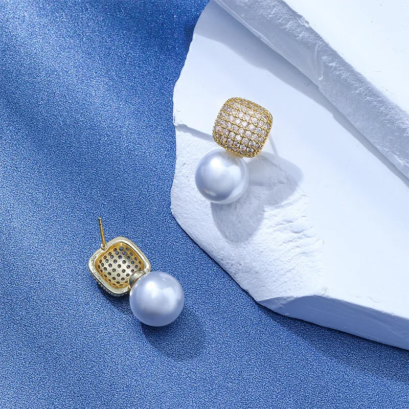 Light Luxury Square Full Diamond Pearl Ear Studs Make Your Face Look Smaller