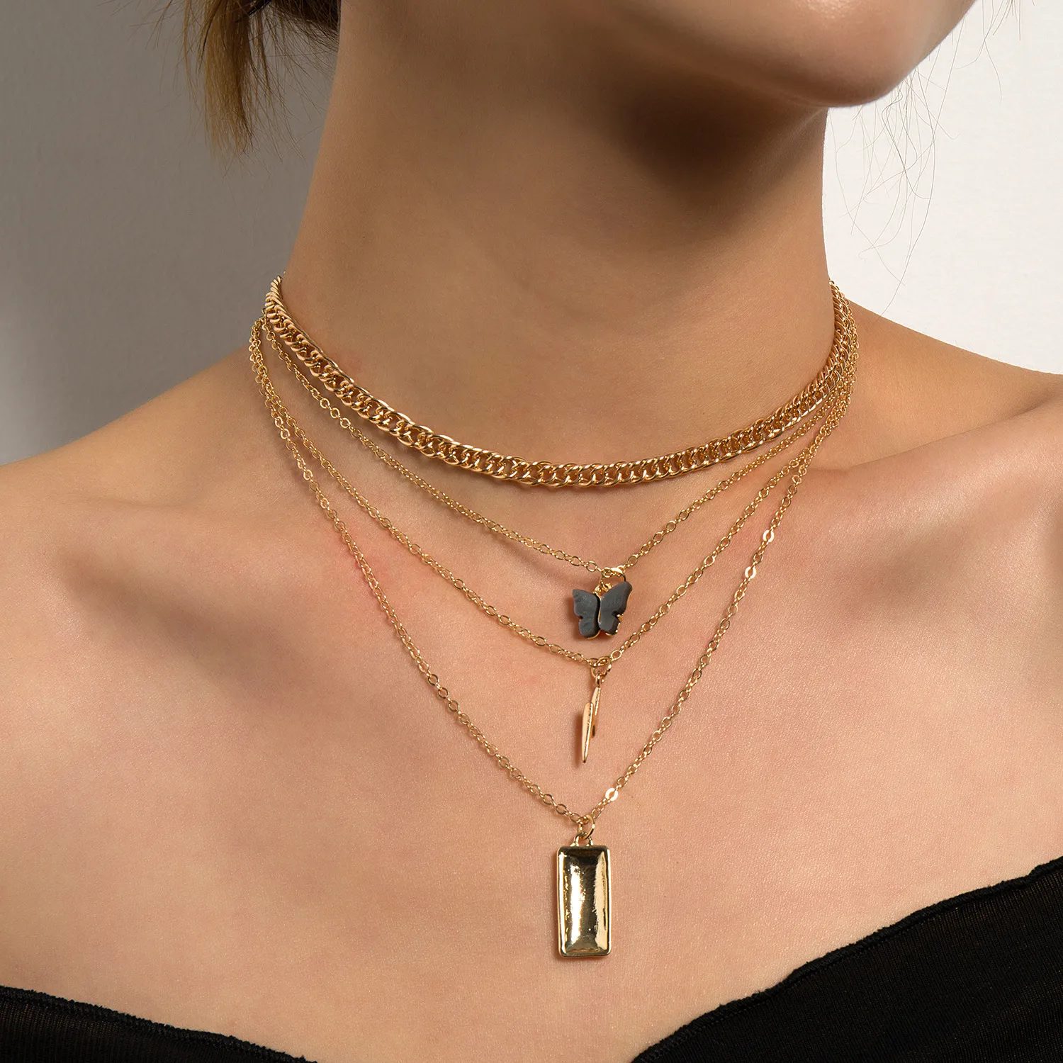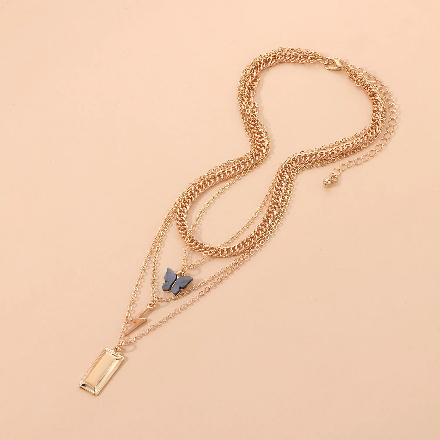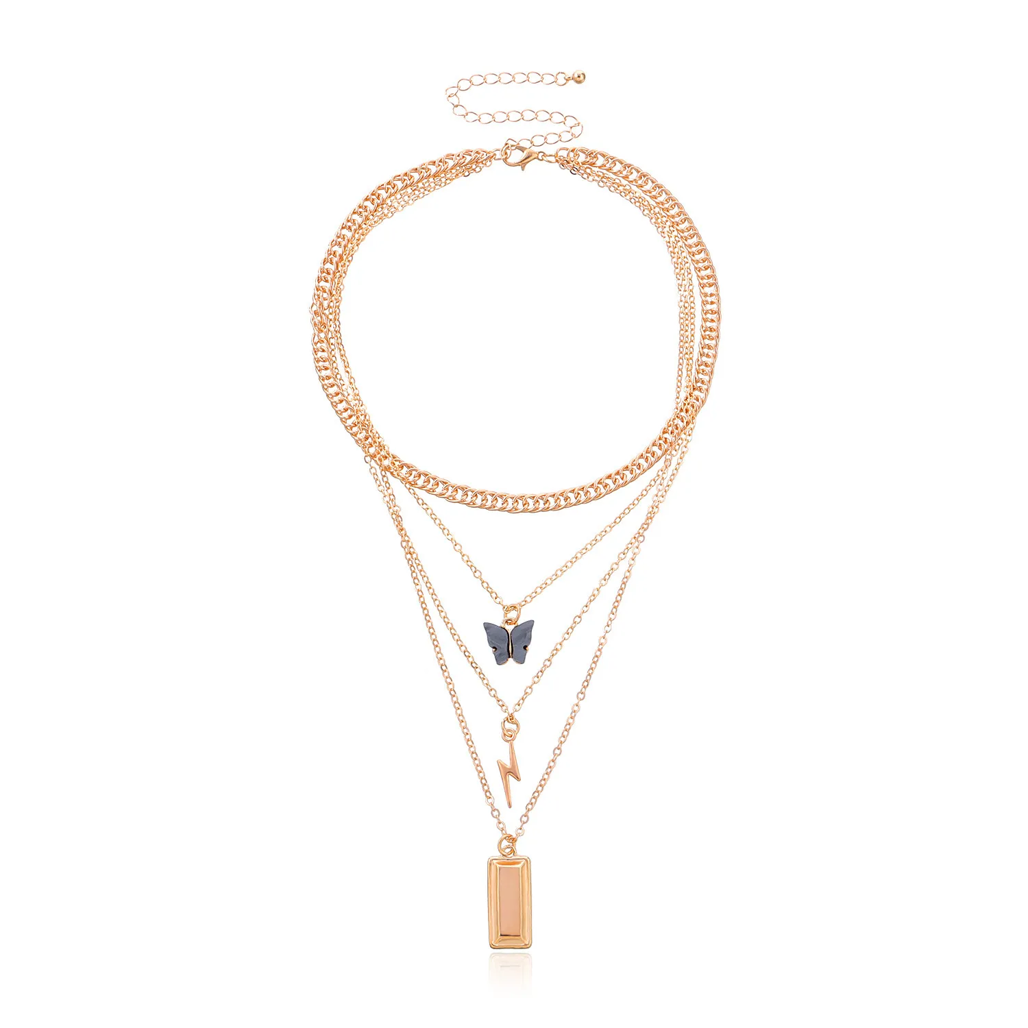 Lightning Butterfly Square Pendant Multilayer Necklace