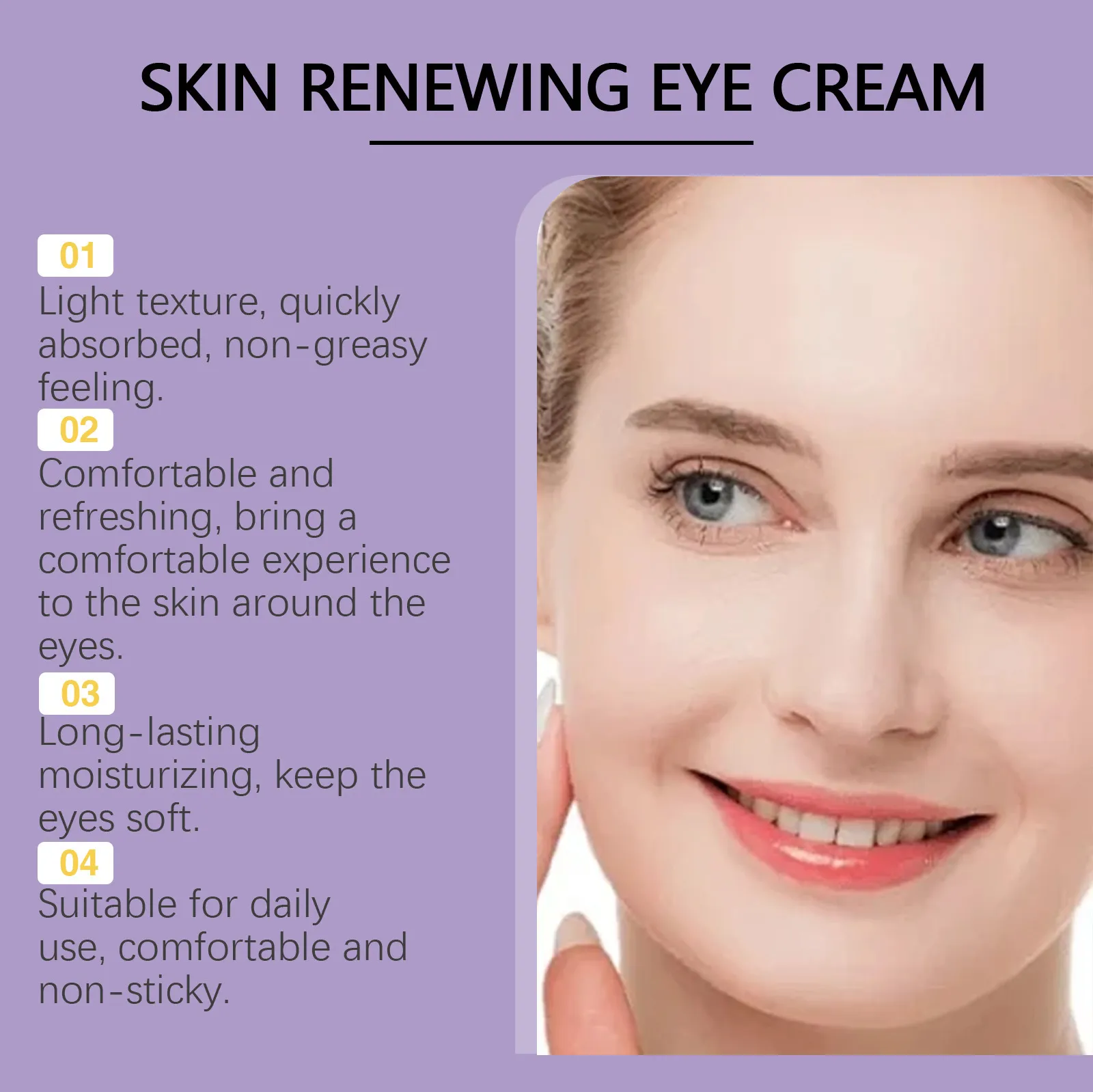 By replenishing moisture, this eye cream helps to keep the skin soft and smooth, reducing the appearance of dry patches and fine lines. This extra hydration also prevents the skin from becoming dull or flaky, giving the under-eye area a refreshed, healthy glow.