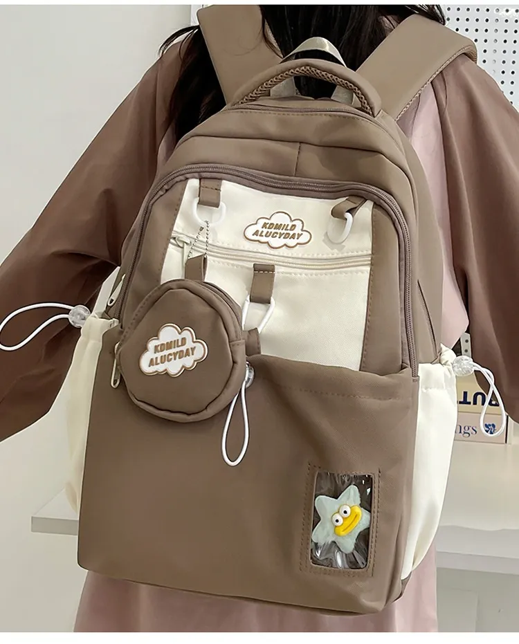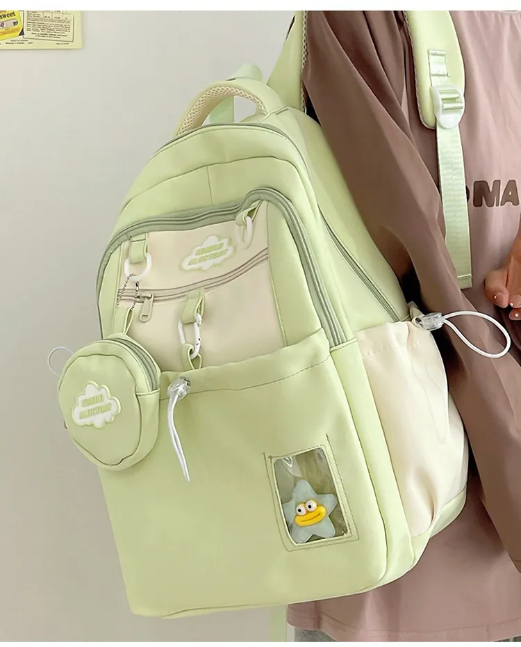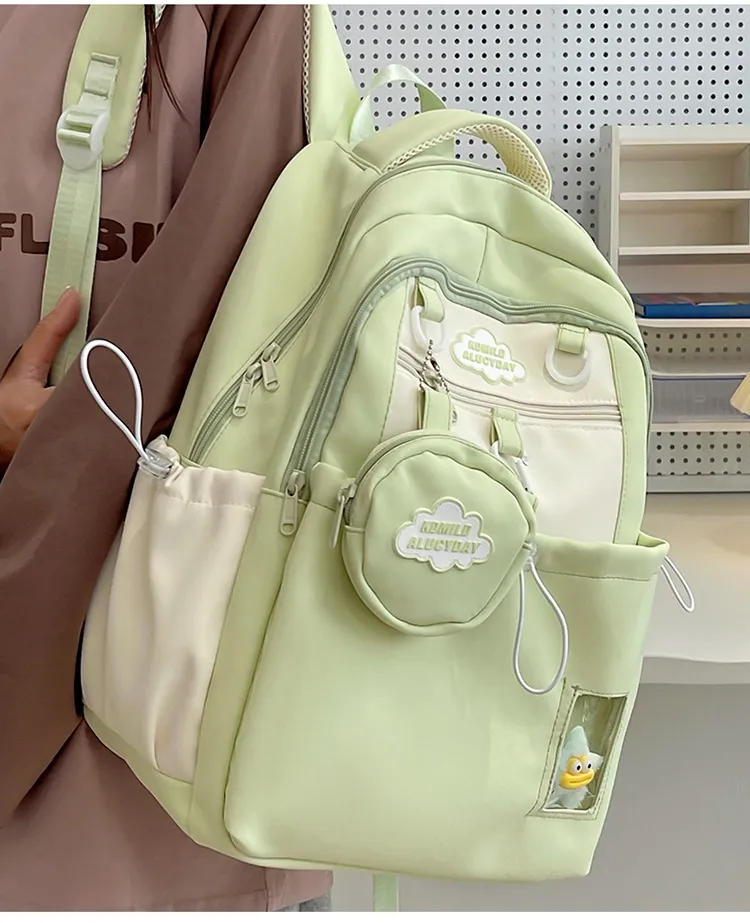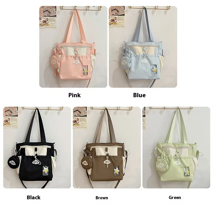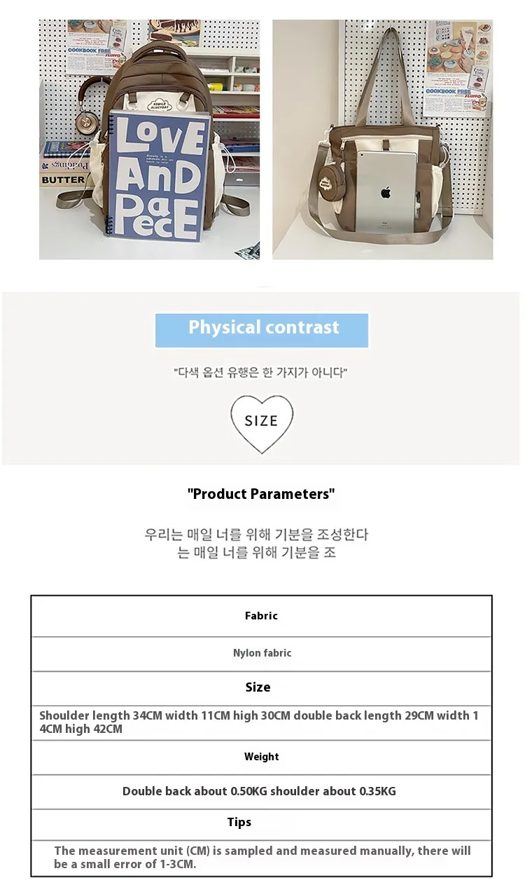 Color: black backpack, brown backpack, blue backpack, green backpack, pink backpack, black single-shoulder bag, brown shoulder bag, blue