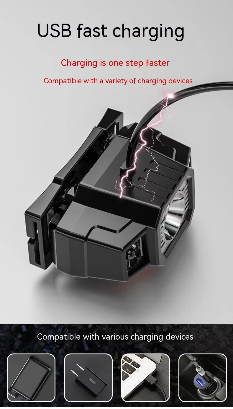 The USB Rechargeable Induction Headlamp features multiple brightness settings, allowing you to adjust the light intensity to suit your environment and tasks. From high brightness for navigating trails to a dimmer setting for reading maps or performing close-up work, this headlamp’s adjustable modes provide the right light for any situation. This versatility ensures that you can conserve battery power when needed or illuminate larger areas when visibility is essential.