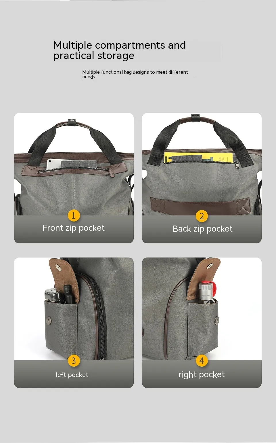 Travel Bag comes with adjustable straps that can be worn as a shoulder bag, crossbody bag, or simply carried by hand. Its foldable design