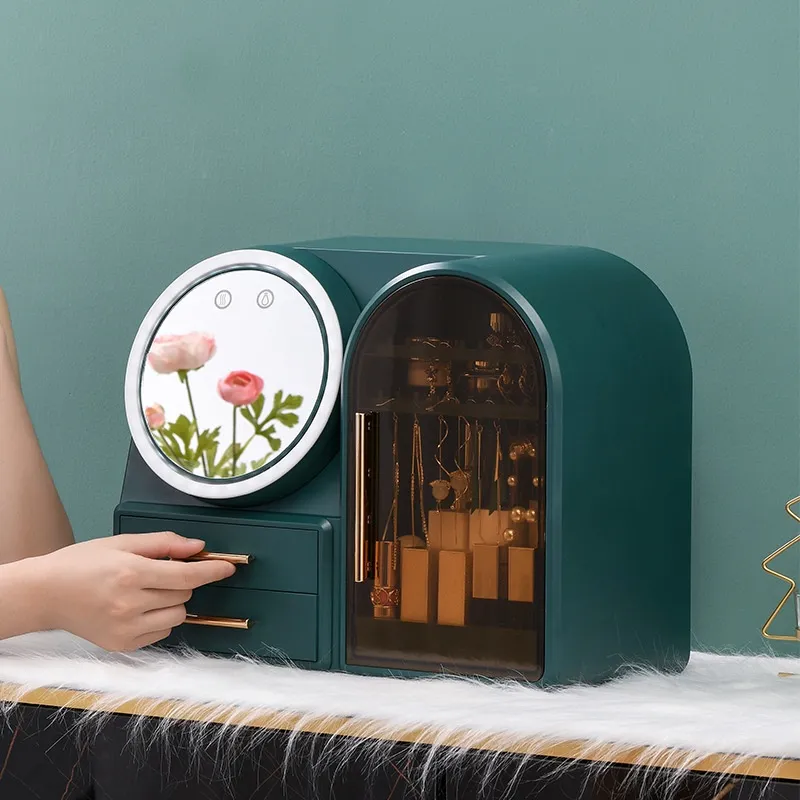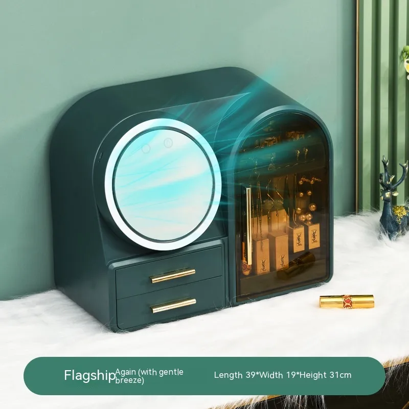 electrodeless dimming LED makeup mirror soft wind fan, flagship [dark green] three-color electrodeless dimming LED makeup mirror soft wind