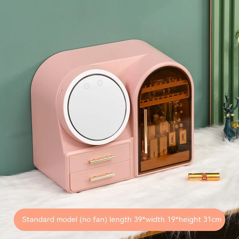 Color: Flagship [Milky White] three-color electrodeless dimming LED makeup mirror soft wind fan, flagship [light pink] three-color
