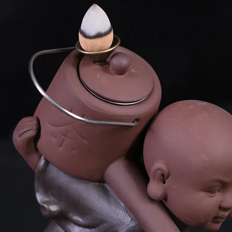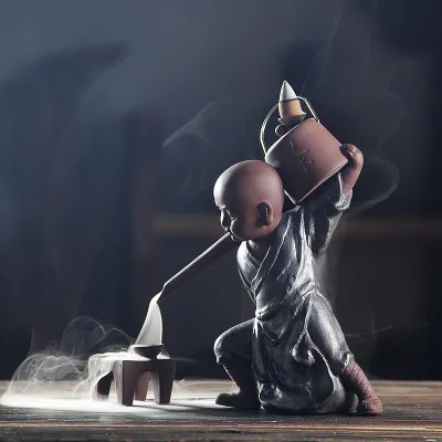 Tea art long creative ornaments mouth pot backflow incense burner ceramics flowing water ornaments little monk sandalwood incense incense