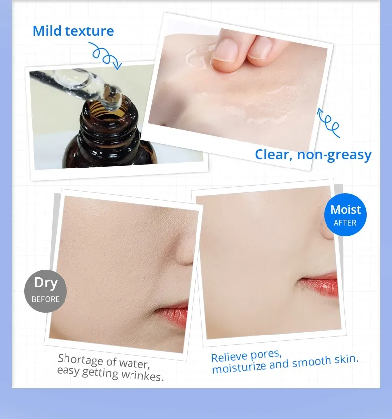 ProduitEFficacy: contenant l'essence de concentré argicable, nourrir, tendre la peau et améliorer le manque d'eau de la peau.