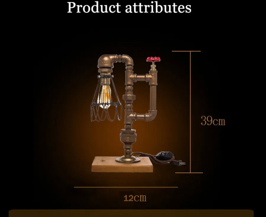 Product Description for Loft Industrial Style Retro Table Lamp – Edison Water Tube Table Lamp