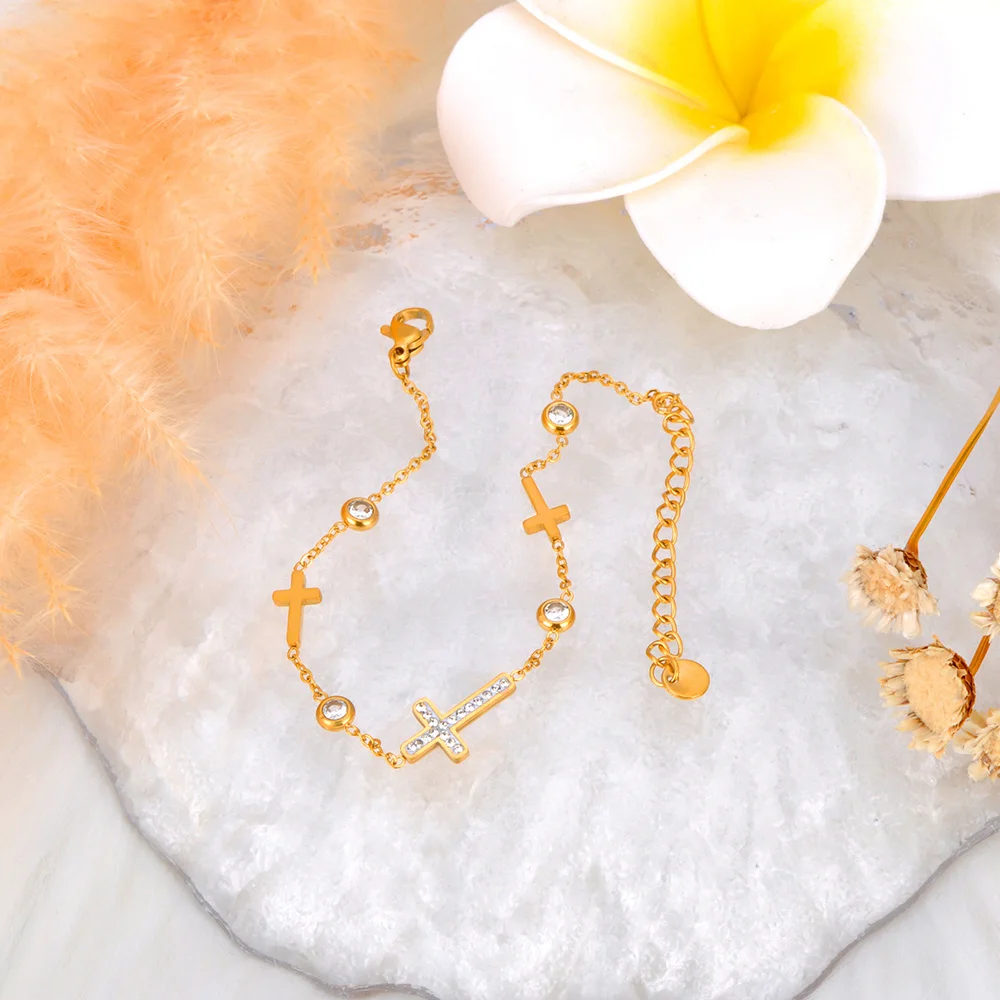 This bracelet is a beautiful addition to any jewelry collection, with a design that works for both formal and casual settings. The 316L stainless steel ensures durability, while the 18K gold-plated finish adds a touch of elegance. The cross charm makes it not only a fashion statement but also a symbol of faith and spirituality.