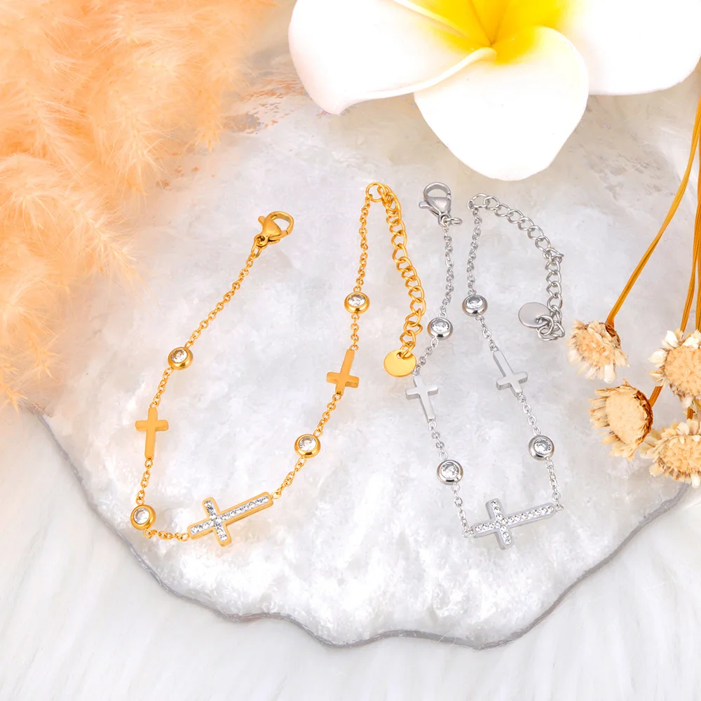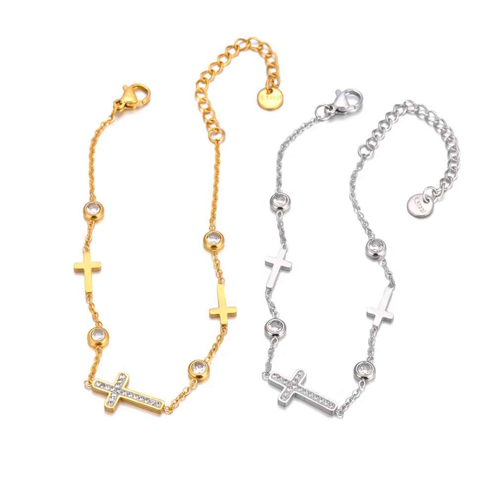 Lokaer 316L Stainless Steel Cubic Zirconia Cross Charm Bracelet for Women