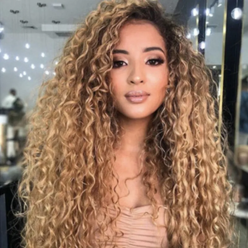 Long Curly African Small Curly Wig Dyed Gradually Brown High Temperature Fiber Wig