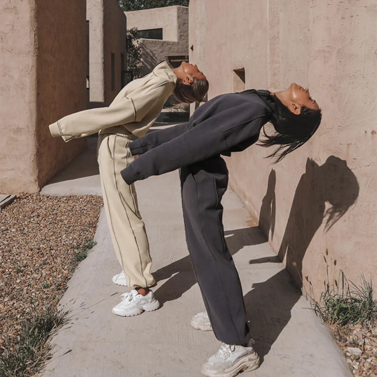 This set is perfect for layering during cooler months or wearing as a standalone outfit. The neutral color options make it easy to mix and match with other wardrobe staples. Pair it with your favorite sneakers for a laid-back look, or dress it up with boots and accessories for a more polished appearance.