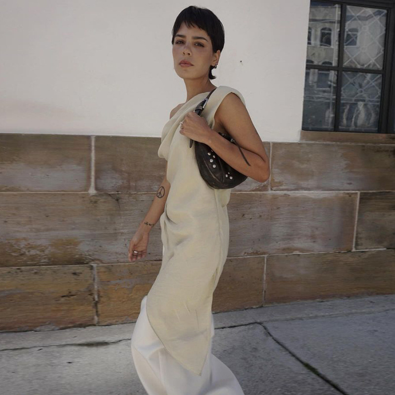 ensures ease of wear, eliminating the fuss of buttons or zippers. Its clean lines and simple silhouette make it a perfect match for a