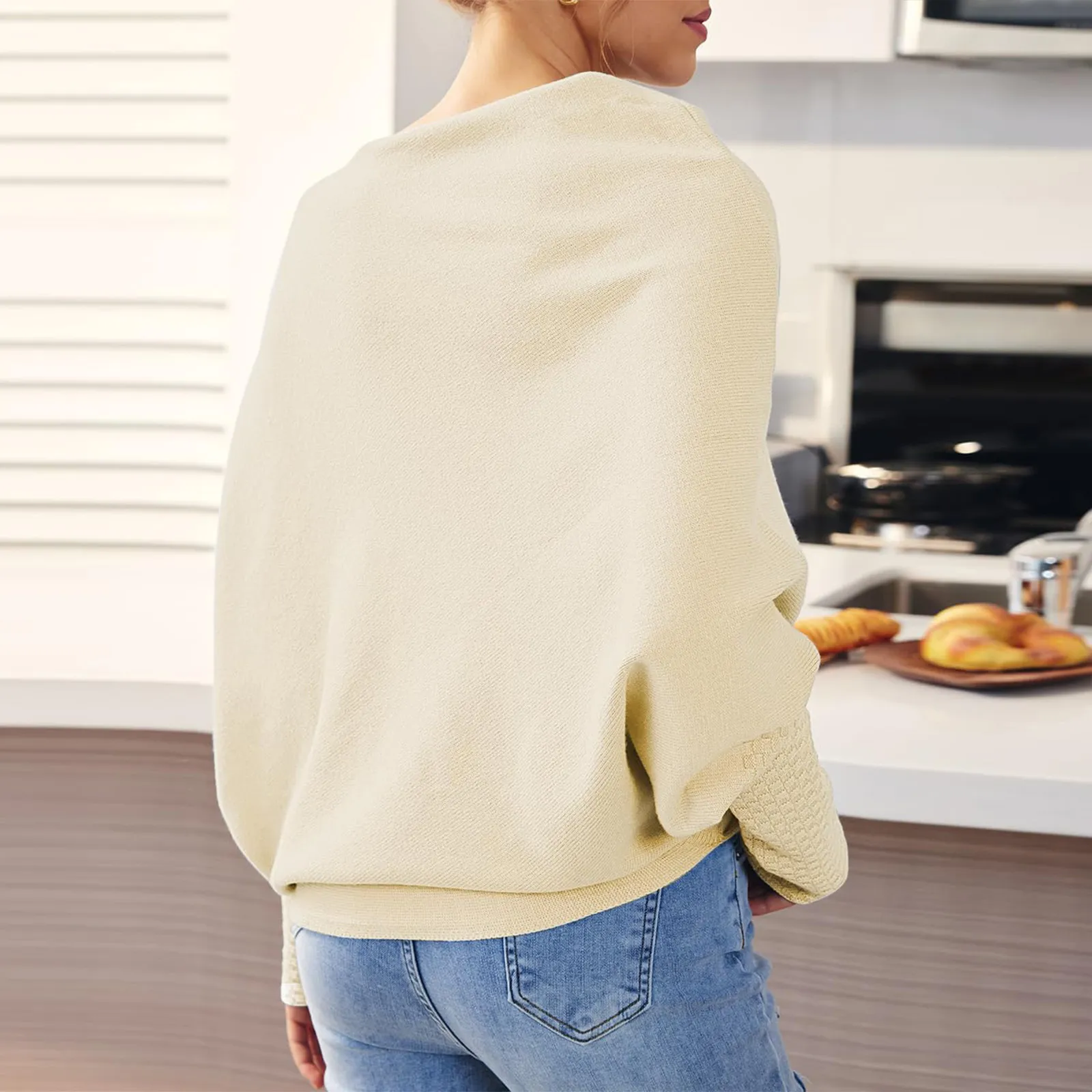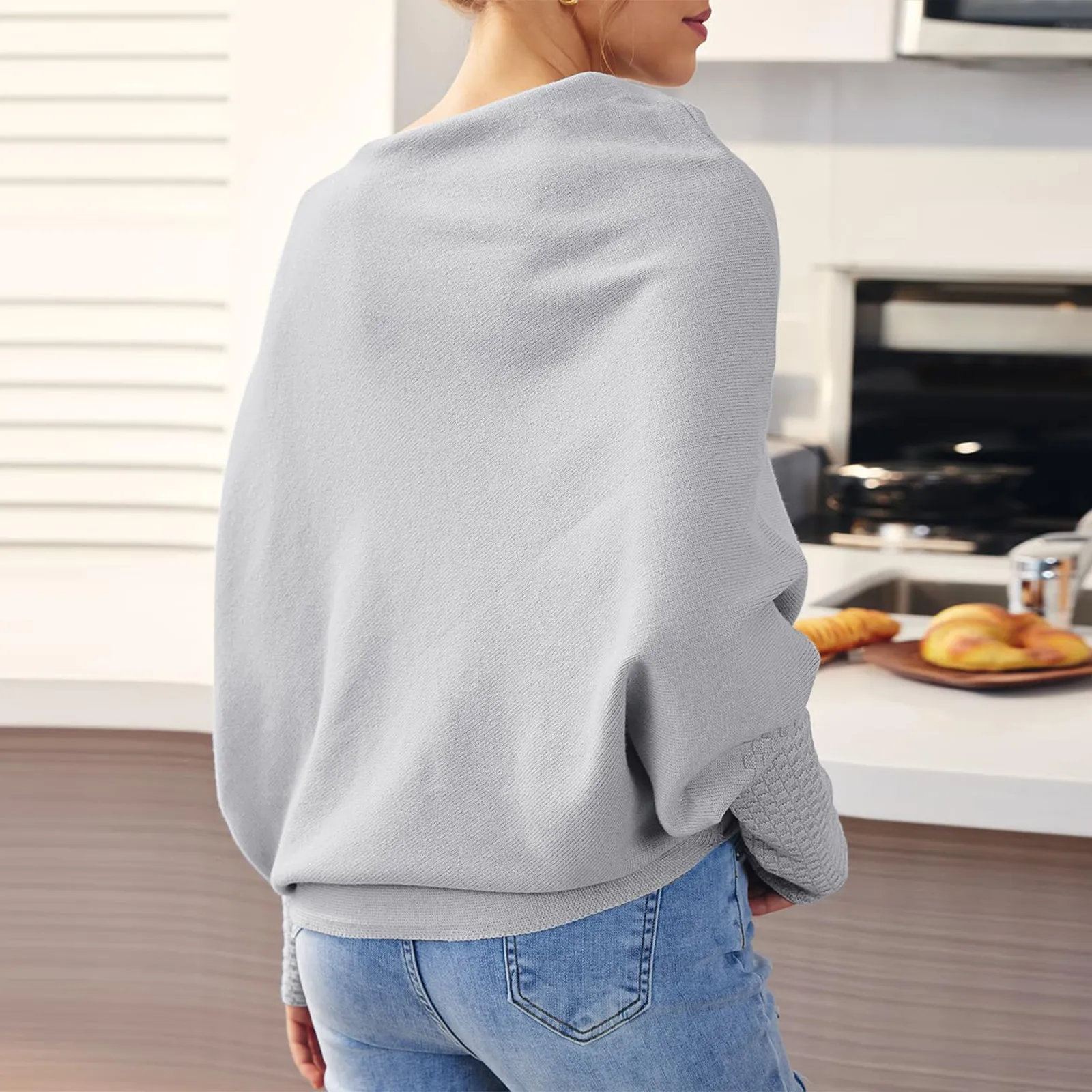 Loose Bat Sleeve Sweater Tops Simple Casual Fashion Versatile Solid Color Round Neck Sweater For Women
