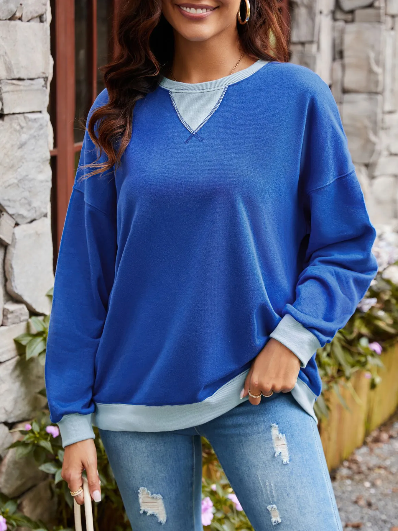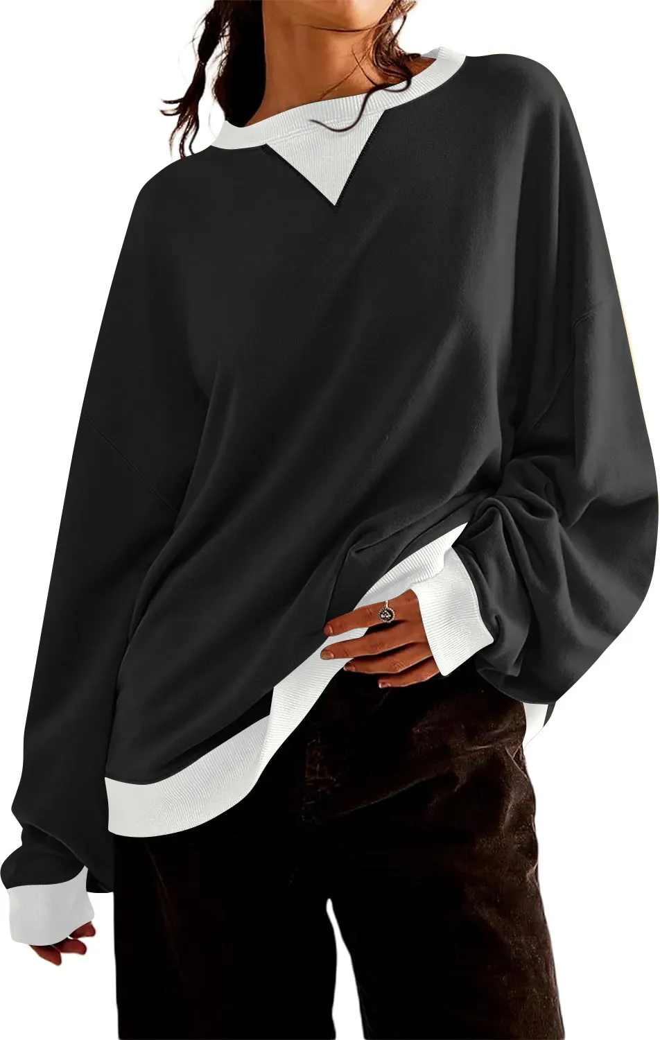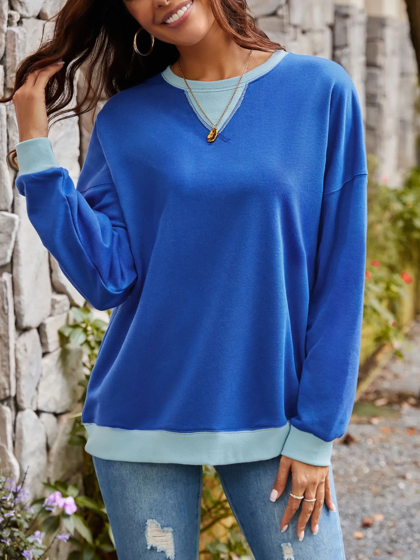 Loose Casual Contrast Color Sweater For Women
