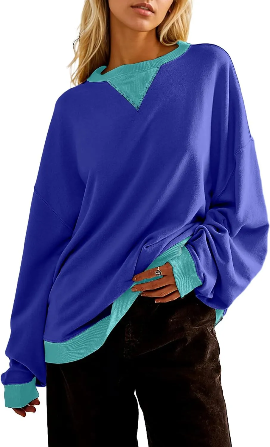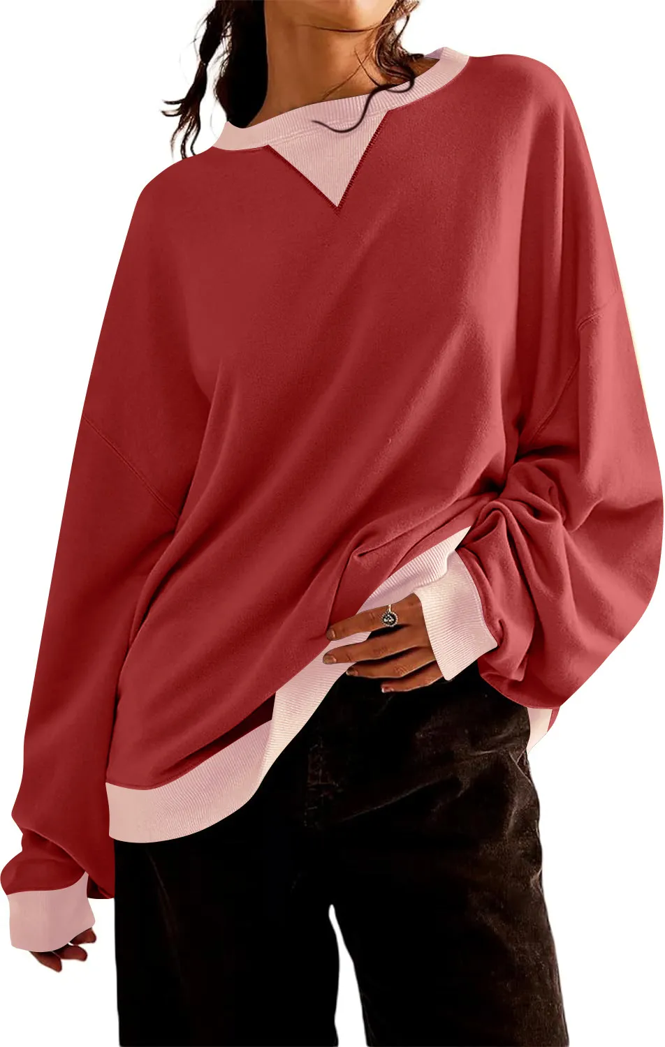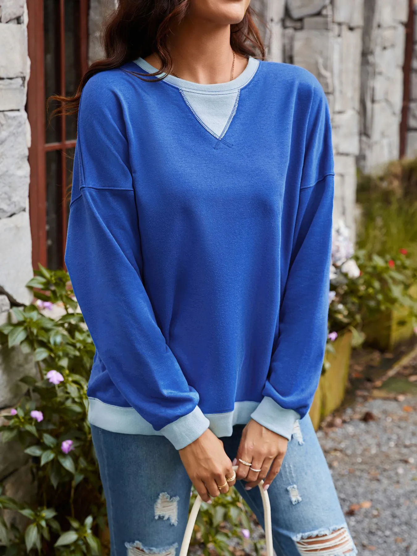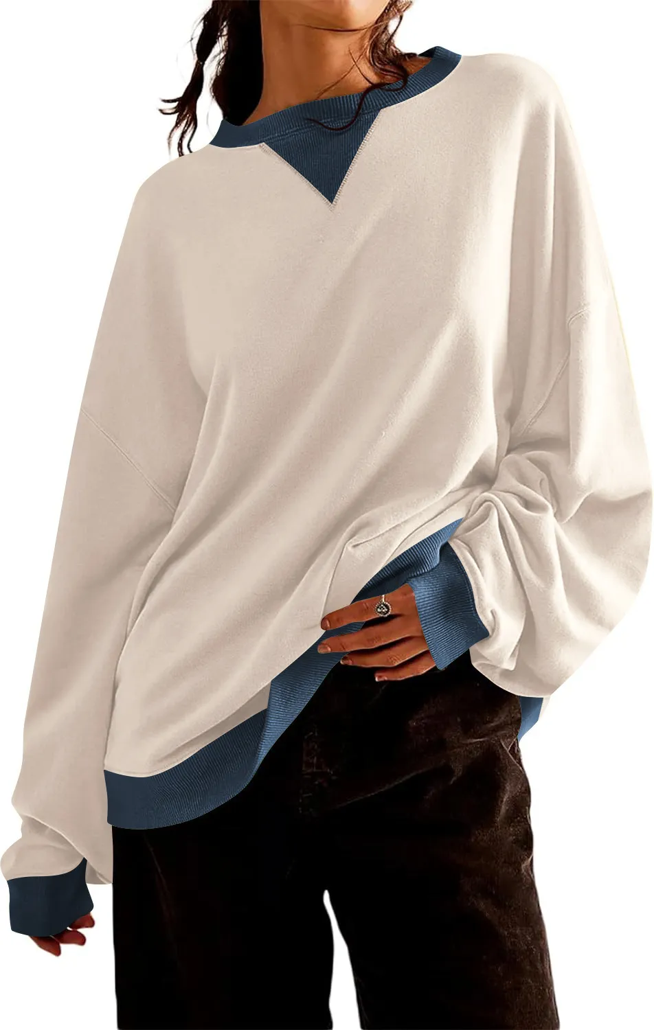Loose Casual Contrast Color Sweater For Women