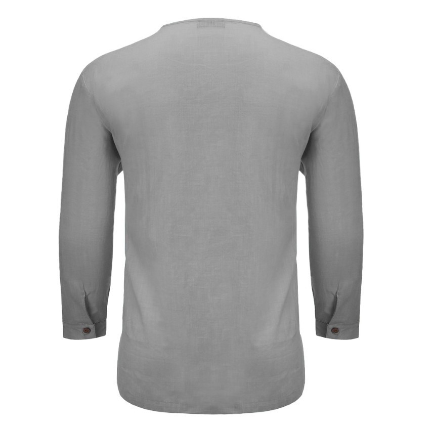 Loose Casual V-neck Top Cotton And Linen Long Sleeve