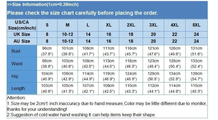 2. Please check the size chart carefully before you buy the item, if you don't know how to choose size, please contact our customer service.