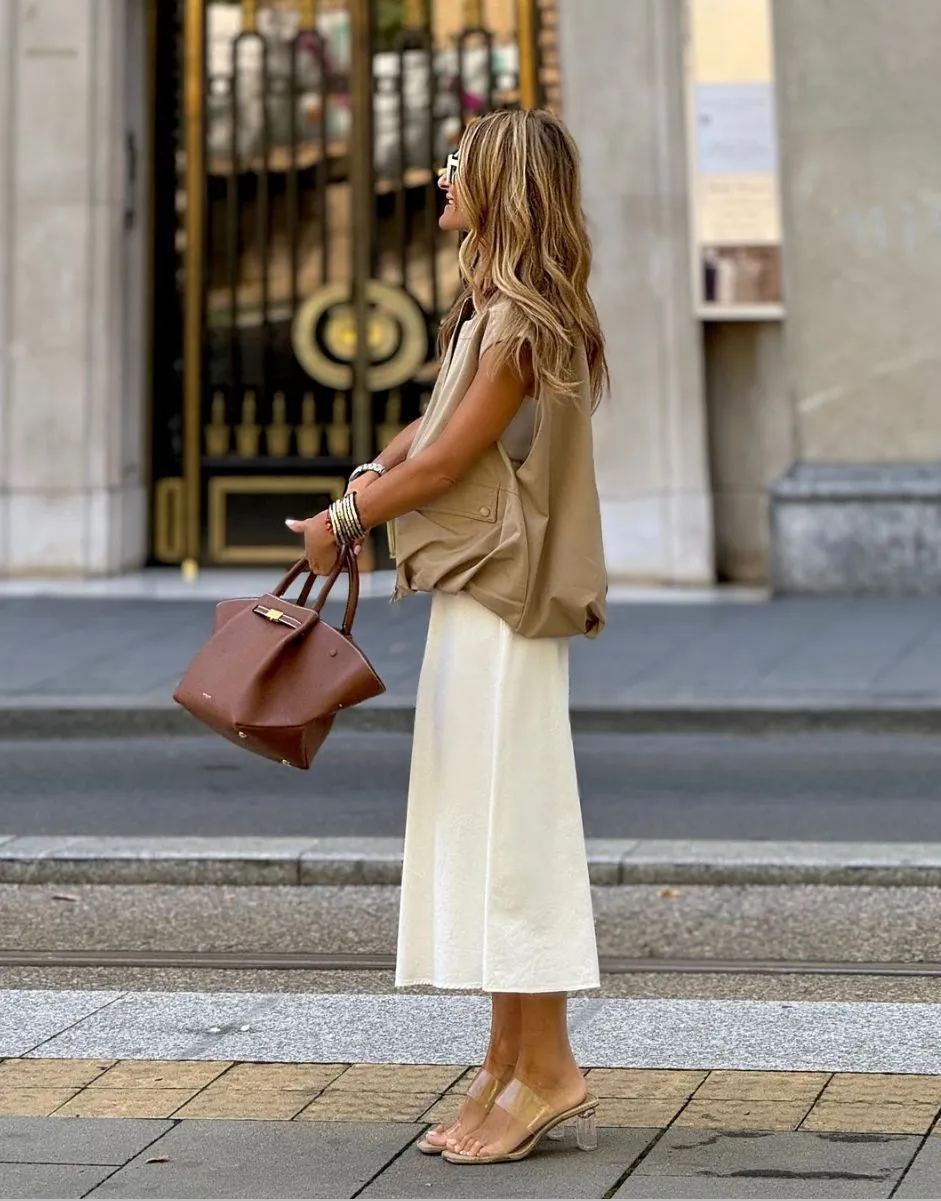 Crafted from lightweight, breathable fabric, it’s ideal for layering or wearing on its own during warmer days. The sleeveless design enhances versatility, making it a great match for jeans, skirts, or tailored pants. Its classic yet modern silhouette suits both casual and semi-formal occasions, offering a flattering shape for various body types.