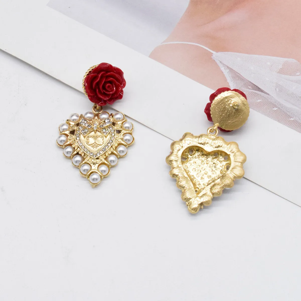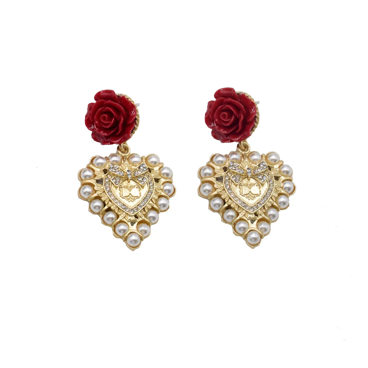 Love Rose Earrings Palace Light Luxury Stud Earrings Accessories