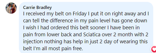 Eliminated their sciatica after 2 weeks of consistent use (wearing the belt for 2 hours/day avg.)